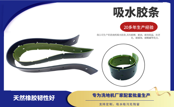 產(chǎn)品說明:吸水膠條是洗地機(jī)吸水扒上的重要部件,作用就是與地面接觸,產(chǎn)生一個密封的空間,把地面上的污水通過風(fēng)機(jī)進(jìn)行回收。吸水膠條一般分為耐油型(進(jìn)口PU原料)和普通型(進(jìn)口NR原料)兩種。