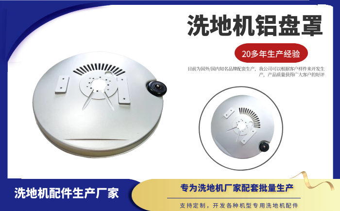 產品說明:鋁盤罩是洗地機刷盤的一種罩子。它是由鋁合金+噴漆制成。低調內涵的灰色加上鋁制材料,不僅在外觀上博人眼球而且使用持久。相比塑膠材質,鋁制的刷盤罩防撞防潮耐磨,是洗地機罩子種類中較好的選擇。