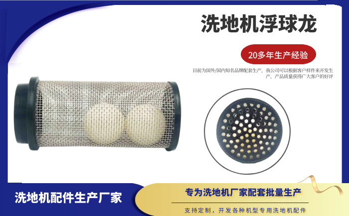 產品說明:浮球籠耐酸堿,浮球籠與彎頭,方形墊片為配套產品。應用在洗地機的水箱內,起到測量水位的作用。? ? ? ? ? ? ? ? ? ? ? ? ? ? ? ? ? ? ? ? ? ? ? ? ? ? ? ? ? ? ? ? ? ? ? ? ? ? ? ? ? ? ? ? ? ? ? ? ? ? 洗地機是現代普遍的清潔設備。我們經過數年時間的技術開發,結合國內外洗地機的具體情況,開發出各種機型專用配件,使您的清潔設備保持優異性能。目前為國外/國內知名品牌配套生產,我公司生產的洗地機吸水膠條,具有耐磨、耐油、耐高低溫、抗老化、耐腐蝕、耐酸堿等優點。憑借多年洗地機配件的生產經驗,我公司可以根據客戶樣件來開發生產,歡迎廣大洗地機生產商來電咨詢。